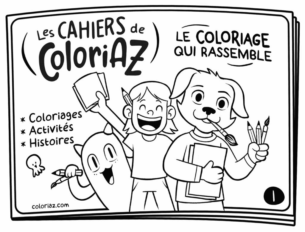 Nous éditons des cahiers imprimables avec des histoires, des jeux, des activités pour diffuser plus largement notre ambition : rassembler par le coloriage !